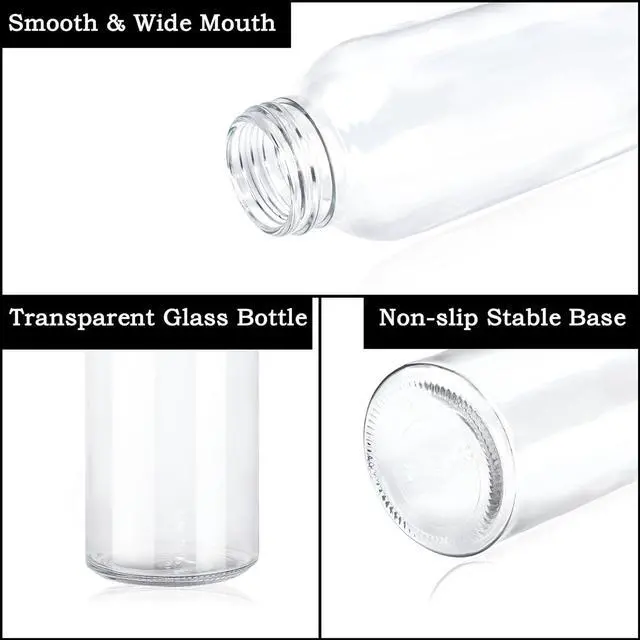 Premium Quality Glass Bottles: Crafted of thick clear glass, lead-free and BPA free, sturdy and reusable for safe long-term use.