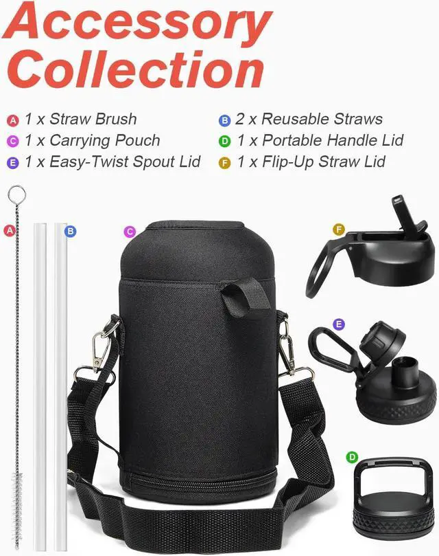 Flexible Drinking On-the-Go: This half gallon water jug comes with 3 different lids. The screw-on lid with flip-up handle is for easy ice refilling with superior portability; spout lid makes it convenient to drink hot liquid and straw lid for sipping cold