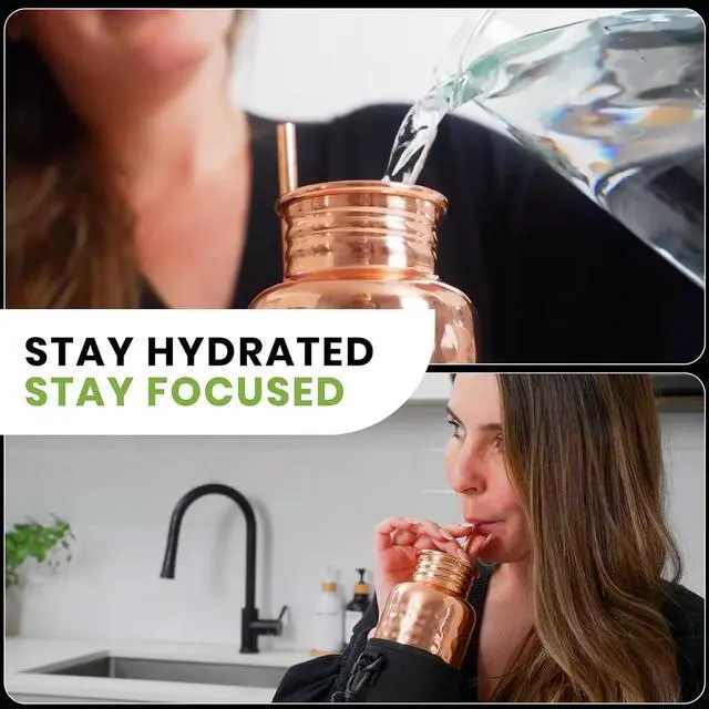 Hydration: Experience the luxury of a pure copper water bottle meticulously crafted to elevate your drinking experience. Say goodbye to dull, tasteless water and hello to a refreshing, revitalizing drink that leaves you feeling invigorated.