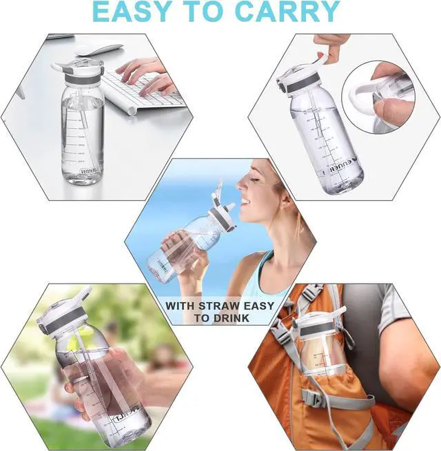 Eco-friendly & Dishwasher SafeWater bottle with straw lid is made of BPA-Free Tritan material, safe and healthy, reusable and recyclable, with no plastic odor, dishwasher safe (except the cap, please not put the cap into the dishwash. Thank you)