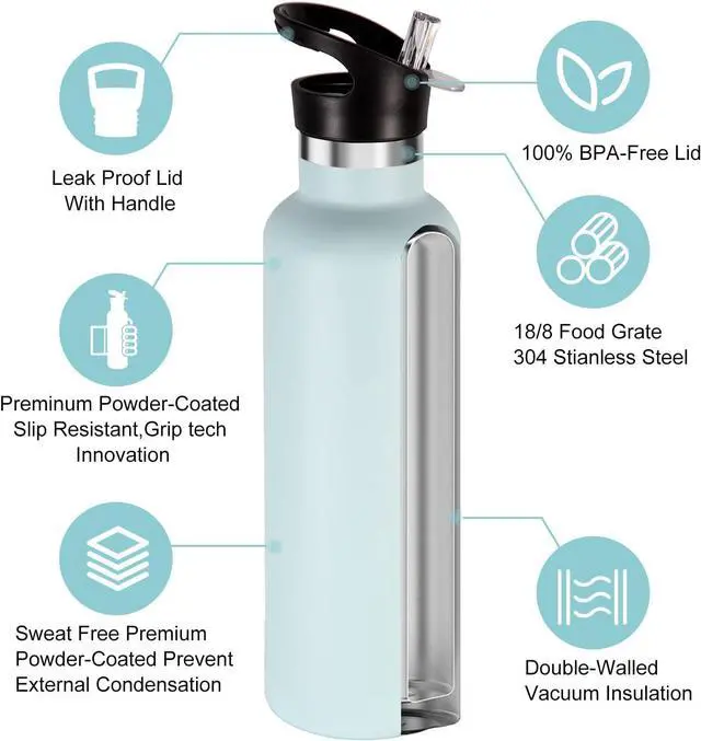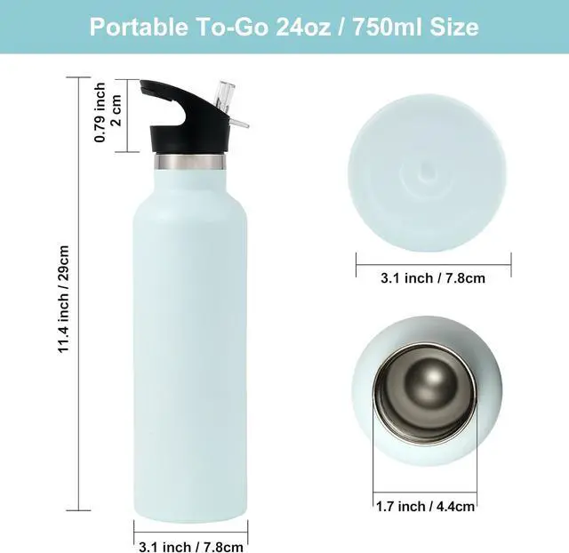 PERFECT SIZE & KEEP WARM FOR A LONG TIME: Our double wall insulated bottle protects temperature for up to 12 hours cold & hot. The 24 Ounces stainless steel water bottle is perfect for everyday use and the cups fit on the bike cup holder and inside the backpack - for your hiking, biking, beach, camping and fitness!