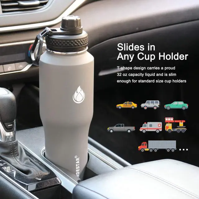 NEW DESIGNED STYLE BOTTLE SENDESTAR 32oz water bottle W/slim outline is designed new, the largest vacuum capacity thermos flask can fit in any standard cupholder, perfect for outdoor activities especially for driving, field trip, beach, camping, cycling, etc