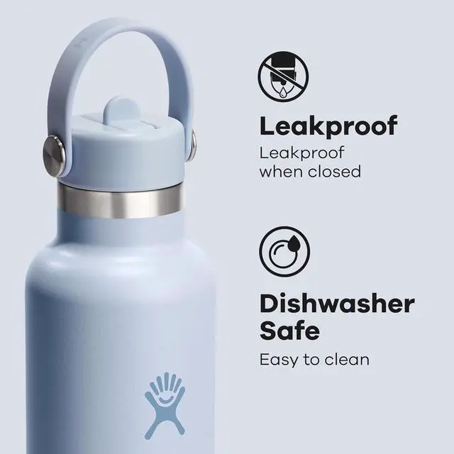 OZ SURF BLUE STRAW BOTTLE: A 24 oz Standard Mouth water bottle with small drinking spout with Hydro Flask' s leakproof Flex Straw Capeasy to fill, easy to drink. Open it up, add your ice, and flip to sip. The insulated stainless steel keeps it cold for up to 24 hours.