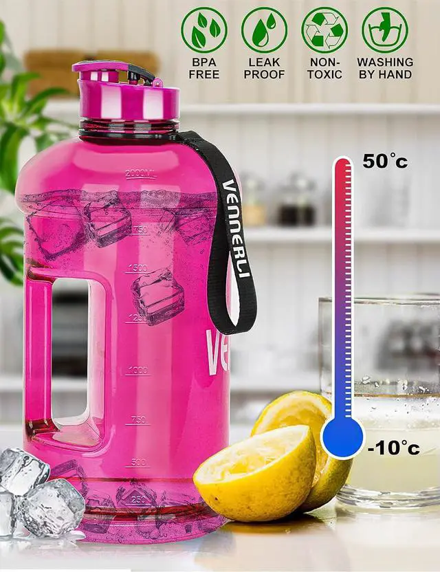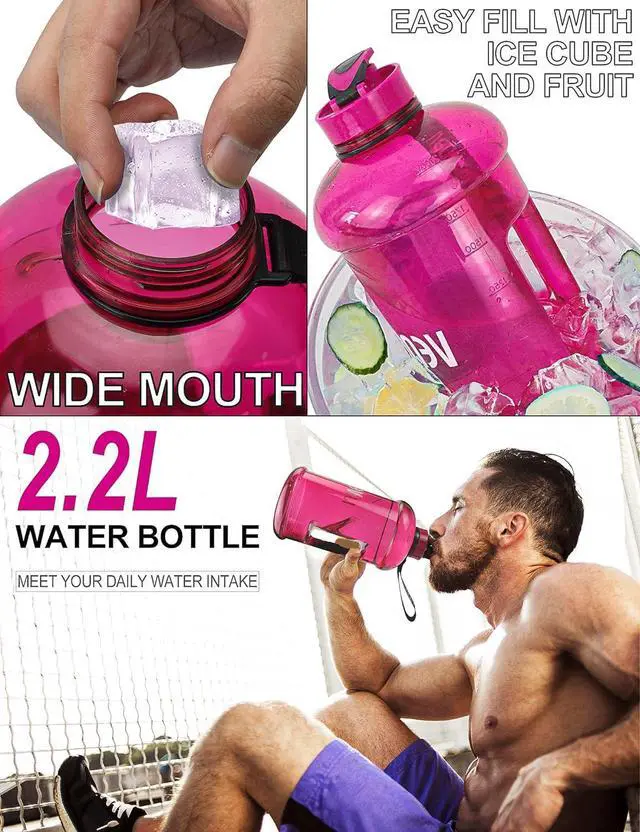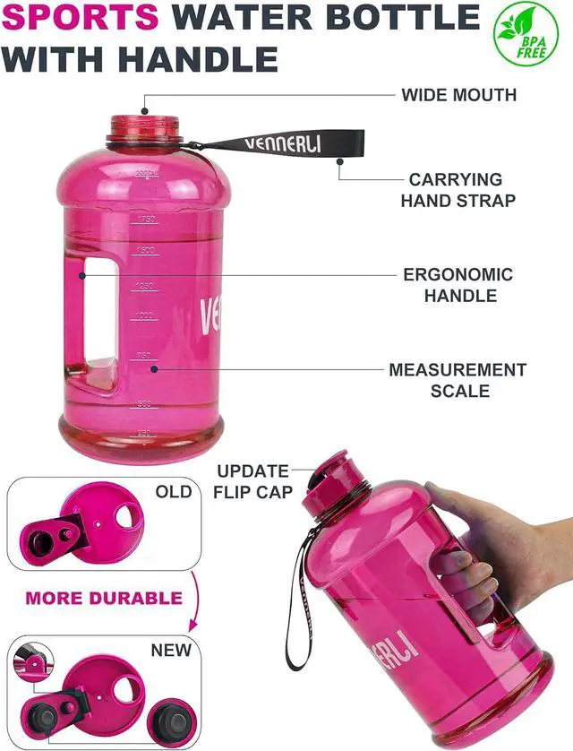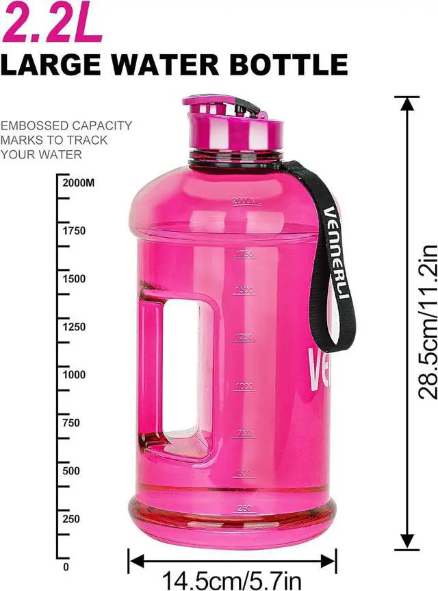 2.2L Large CapacityVENNERLI 74oz water jugs with handle can meet your normal water needs for a day and the measurement scales on the bottle is easy to track your water intake. Perfect for pre or after workout water needs.