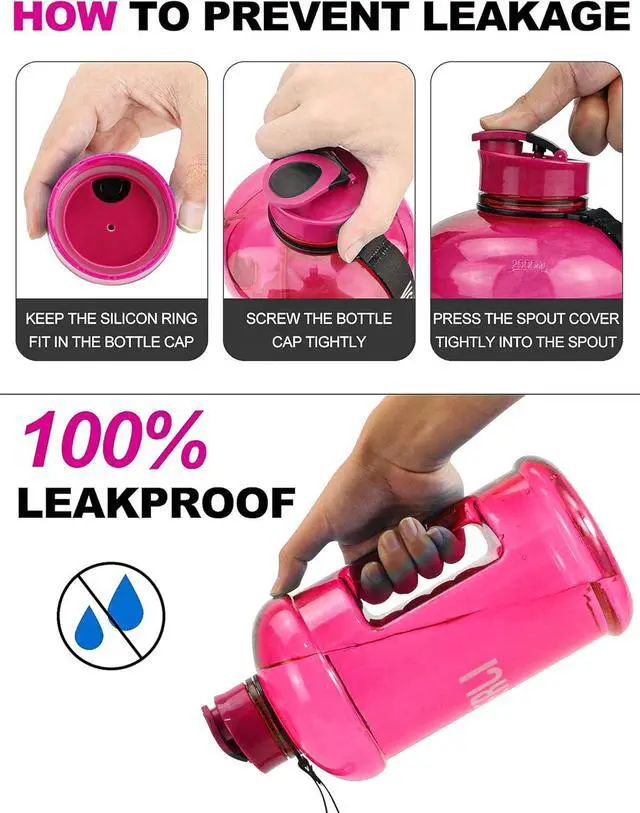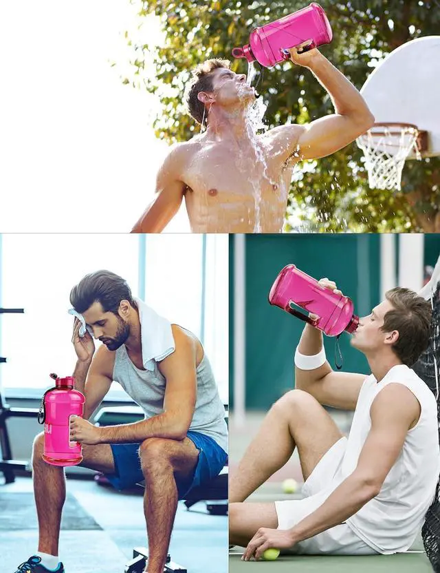 Width-Mouth & Easy to CleanHalf gallon water jug with wide-mouth, easy to clean and add ice or fruit in it. It is ideal for working, hiking, biking, study, body building, weight loss, camping, traveling and so on. Also a great gift for family and friends.