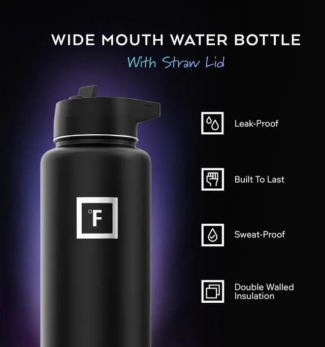 INSULATED SPORTS WATER BOTTLE: Goodbye sweat! The double wall insulation makes the Iron Flask sweat-free! It keeps your drink COLD for up to 24 hours, and HOT for up to 12 hours. *NOTE: ONLY the 14 Oz, 18 Oz, & 22 Oz fit in cupholders*