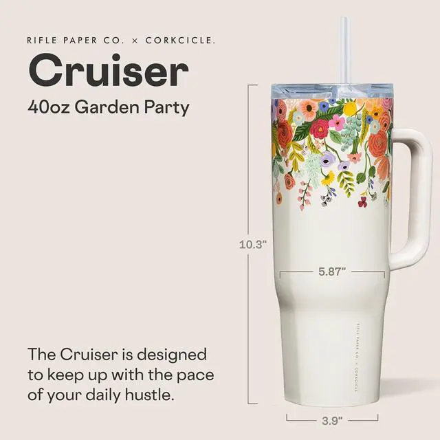 Corkcicle Cruiser Tumbler 40 oz: This large insulated tumbler supports all-day hydration by keeping drinks cold for 20 hours or hot for up to 9 hours