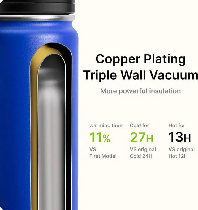 ALL-DAY INSULATION: Vacuum insulation keeps cold drinks cold for 24 hours and hot for 12 hours, you can dink cold water for a whole day outdoors. Dual-layer construction is sweat-proof, non-condensing, and Easy to hold even with wet hands