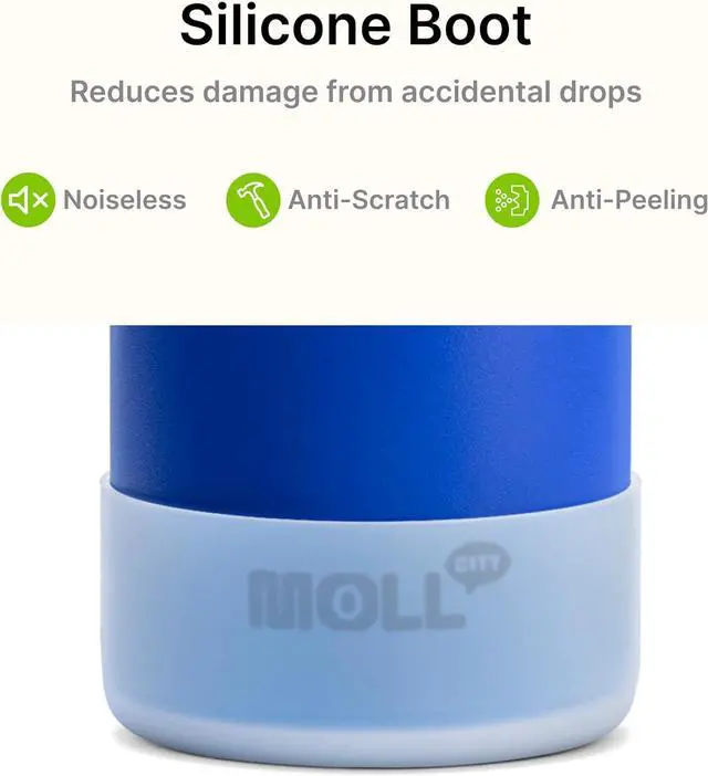 • BOTTOM PROTECTION: Don't worry about damage to your water bottle from accidental drops or falls, our silicone sleeve prevents scratches and dents on the bottom to prolong the life of your water bottle. It prevents the water bottle from clinking when it is placed, so there is no drinking disturbance during quiet office and study time.