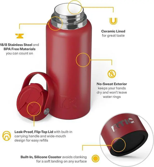 FLIP-TOP LID: Stay hydrated with this BPA free water bottle without spills or leaks thanks to the flip-top lid with a secure seal to prevent leaks and spills; this flask water bottle also has built-in carrying ring