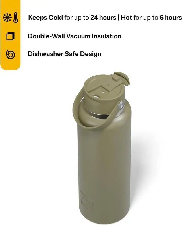 DOUBLE-WALL INSULATION: Built with double-wall vacuum insulation to keep drinks cold for up to 24 hours and hot beverages warm for up to 6 hours, making this vacuum insulated water bottle perfect for any adventure