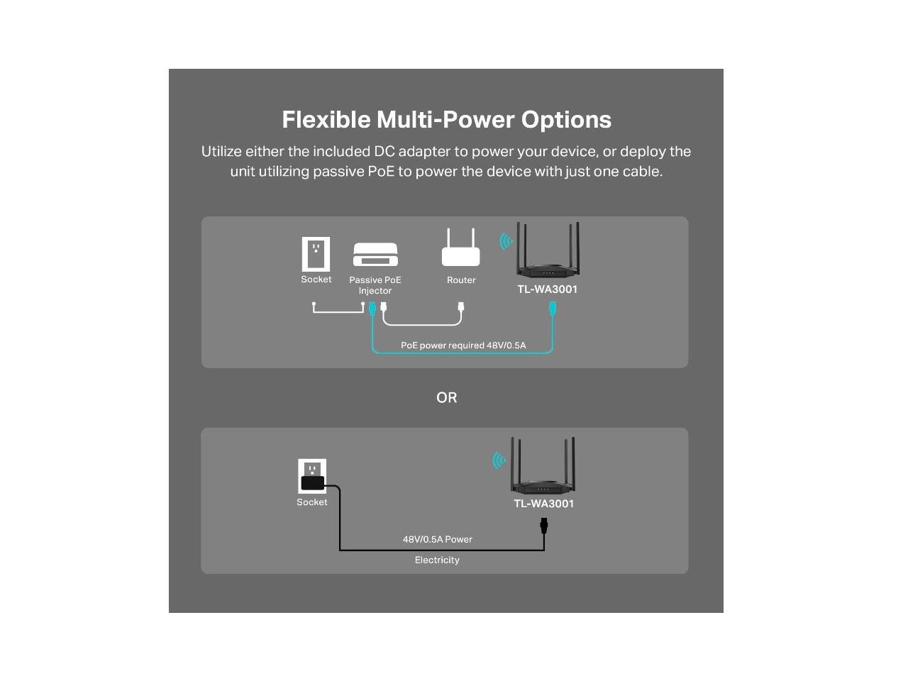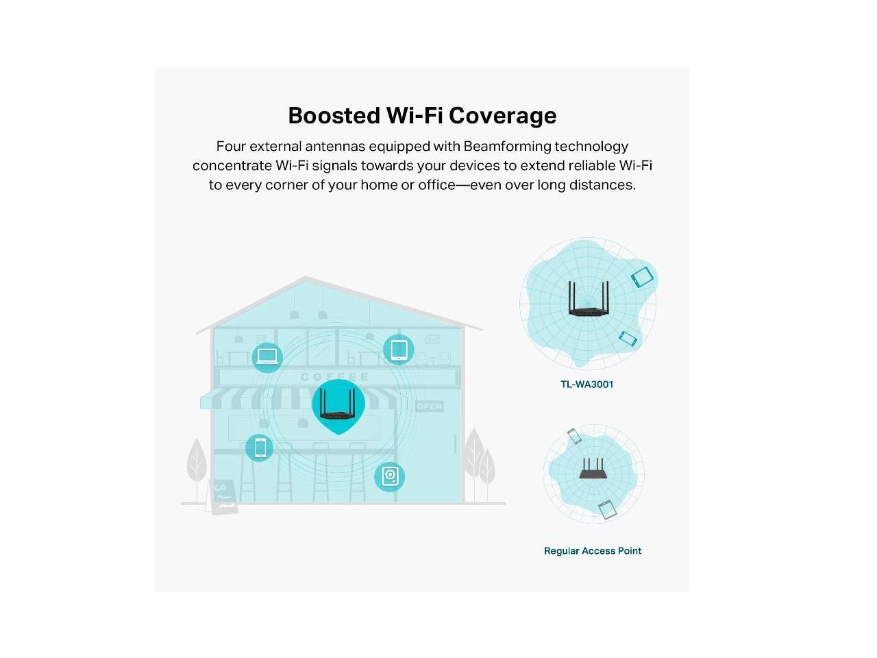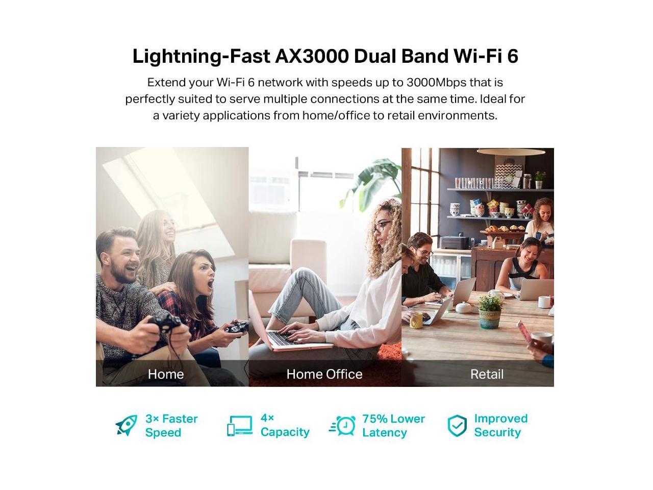 - •?Ultra-Fast True Wi-Fi 6 Speeds?Designed with the latest wireless Wi-Fi 6 technology featuring 1024-QAM, HE160 and Long OFDM Symbol, the TL-WA3001 boosts dual-band Wi-Fi speeds up to 2976 Mbps.