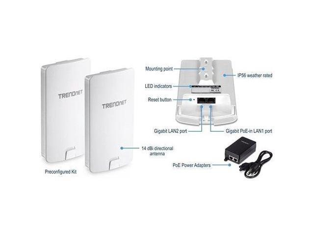 TRENDnet 14 DBI WiFi AC867 Outdoor Poe Preconfigured Point-to-Point Bridge Kit, 4 DBI Directional Antennas, for Point-to-Point WiFi Bridging Applications, 5GHz, AC867, TEW-840APBO2K