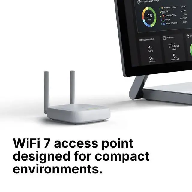 The NWA30BE desktop-style wireless access point brings next-generation WiFi 7 performance in a sleek, compact design. Built with a single 2.5 mGig (multi-gig) uplink, it's designed for a WiFi-first approach, creating a clean, cable-free desktop where all your devices connect wirelessly.