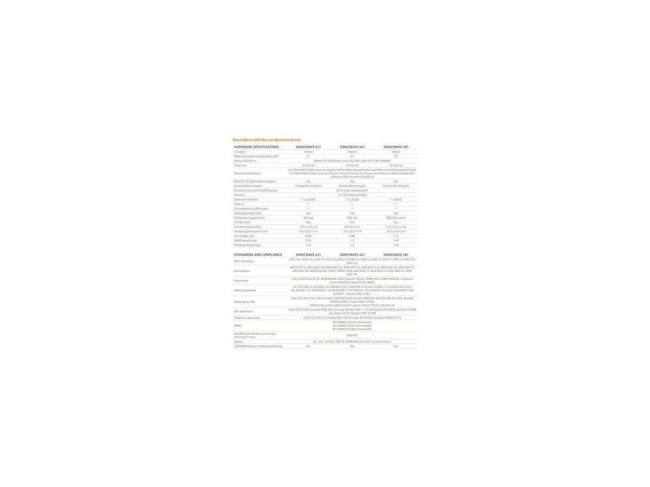 SonicWall SonicWave 621 Dual Band IEEE 802.11 a/b/g/n/ac/ax Wireless Access Point - Indoor - 2.40 GHz, 5 GHz - Internal - MIMO Technology - 1 x Network (RJ-45) - 2.5 Gigabit Ethernet - 21 W - Ceiling