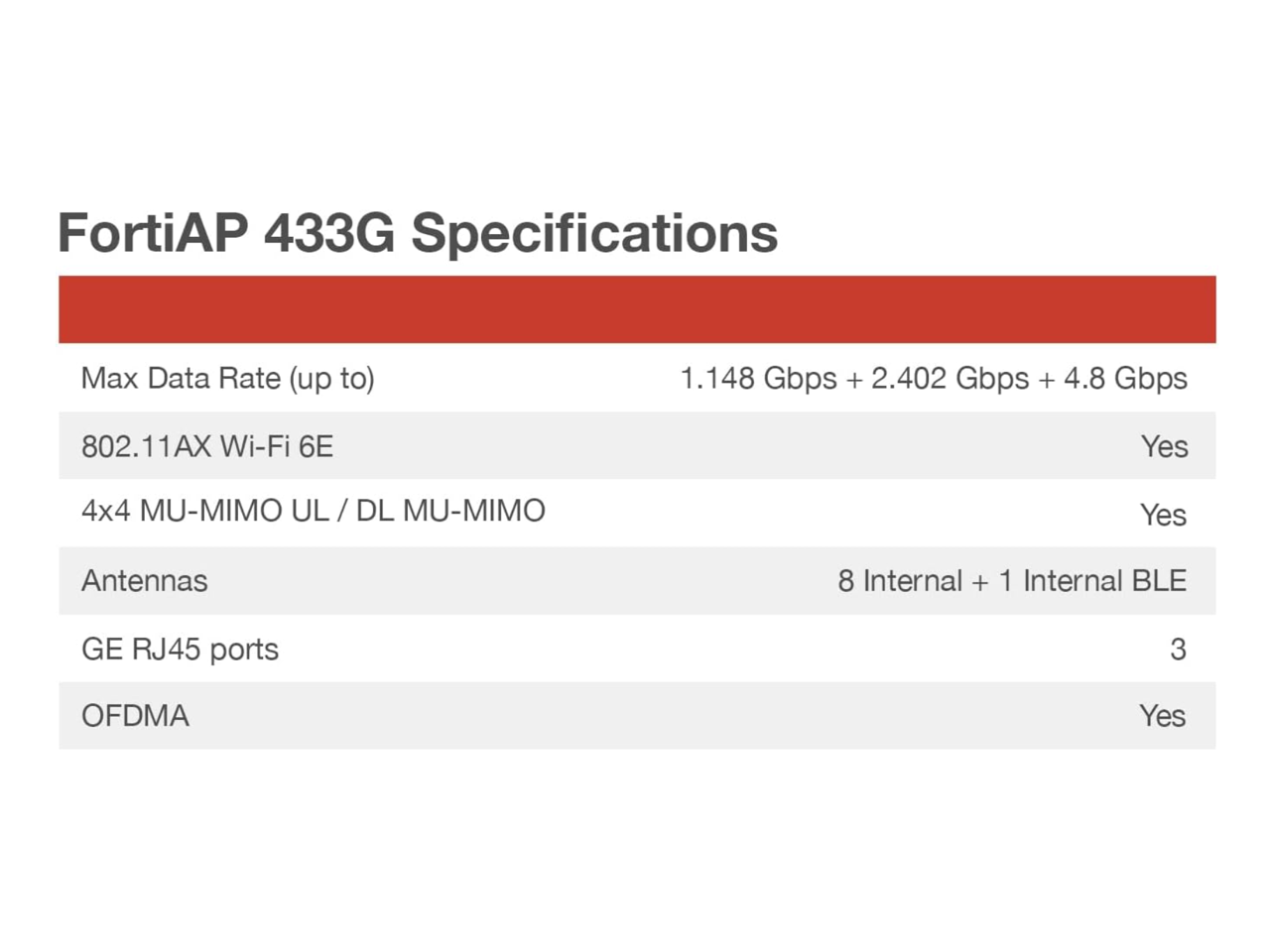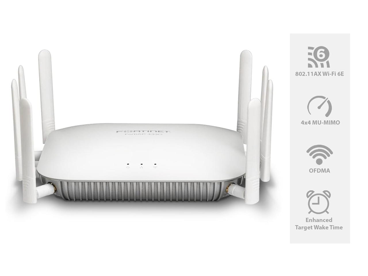 Fortinet FortiAP 433G Wireless Indoor Wi-Fi 6E Access Point, Tri radio, Standard Mounting kit for Ceiling, T-Rail and Wall included
