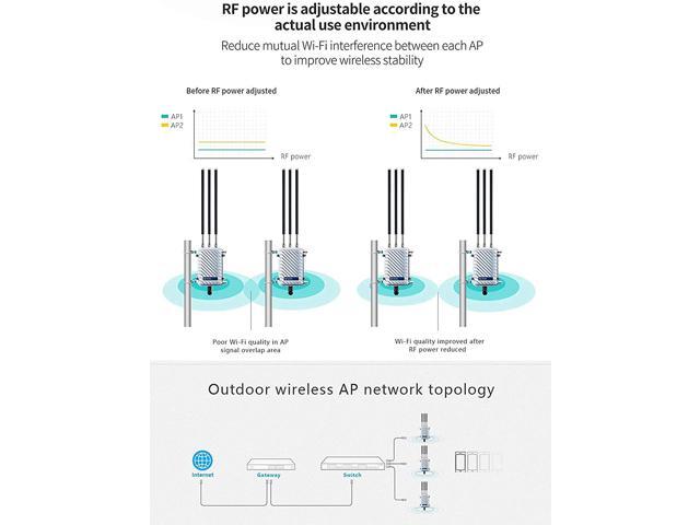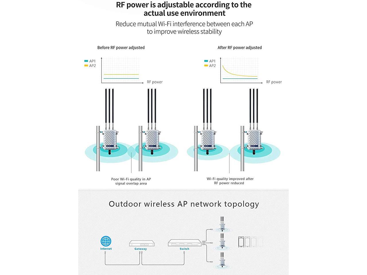 KuWFi Outdoor Wireless WiFi Access Point 11AC 750Mbps Dual-Band 2.4G/5.8G Antennas Waterproof Base Station AP Support Gateway/AP/WiFi Repeater/WISP
