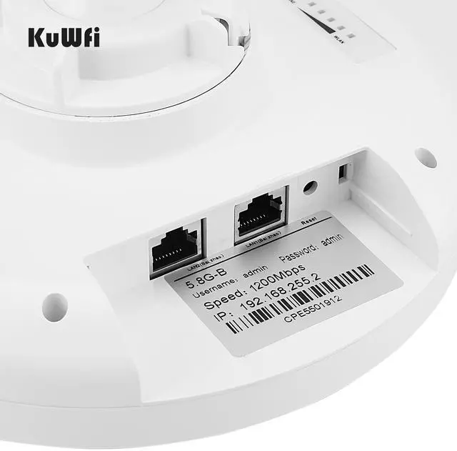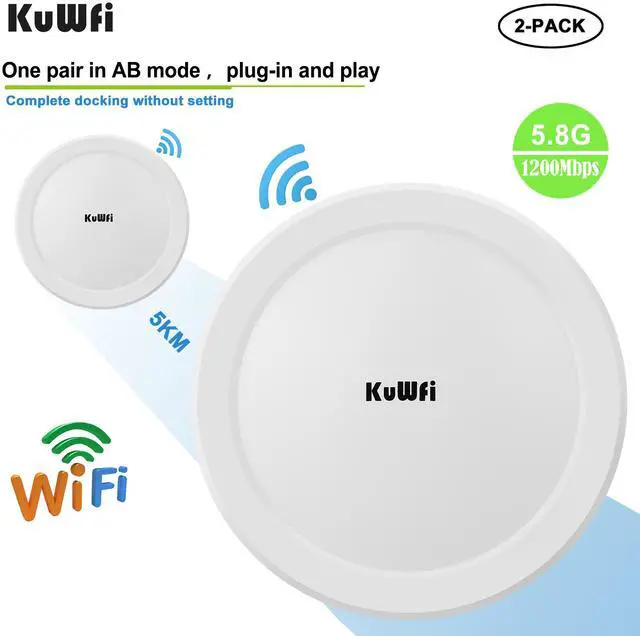 N PoE Input LAN2: Data oE Pass-Through 1 x Reset Button LED Indicators 1 x Power WLAN (Wireless Connection) 5 GHz 2 x LAN Power Source PoE adapter 24V POE 100V~240V AC, 50-60Hz Package Contents KuWFi Outdoor AP*2 PoE adapter*2 Pole Mount Ring Mounting Screw Set Quick Installation Guide