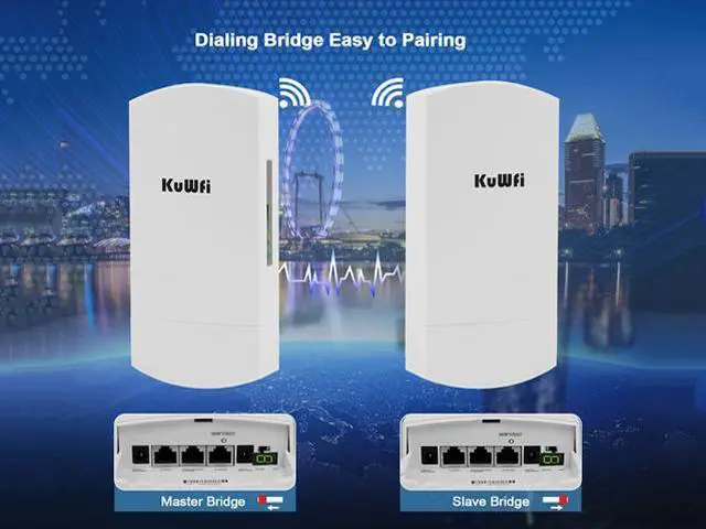 Wifi bridge router works at 5G frequency. It supports Point to Point and Point to Multi-Point wireless connection. The transmission speed between 2 bridges max is 300Mbps. The highest network speed that can be achieved max is 100Mbps. To achieve the CPE function, one needs to act as a receiver and the other one as a transmitter.