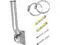 The wireless bridge pole & wall mount bracket includes expansion screws for brick wall installation, four screws for mounting on wooden walls, and two American-style hose clamps for securing the J mounting bracket to an antenna pole, offering all essential components for effortless installation.