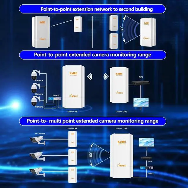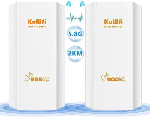 KuWFi 5.8G Wireless Network Ethernet Bridge, Long Range Transmission WiFi Access Point Outdoor AP CPE Kit IP65 Waterproof Point to Point WiFi Bridge for Extend starlink Router Signal 2-Packs