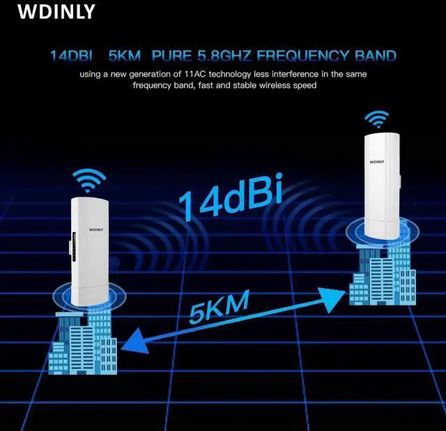 5KM Wireless Bridge Outdoor for Network Extend, 5.8G Point to Point WiFi Bridge Long Range with 14dBi High Gain Antenna, PoE Powered, for Starlink WiFi Extender/Surveillance Camera, 2 RJ45 Port