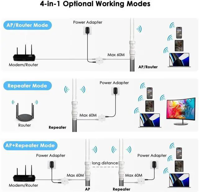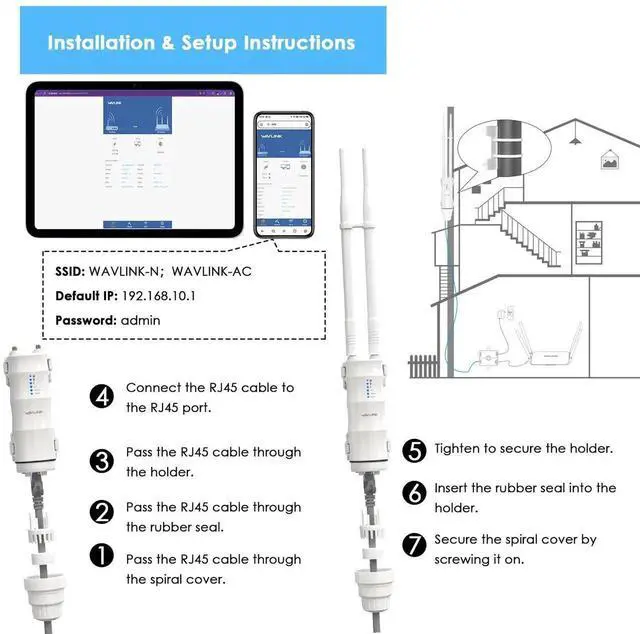 Outdoor Access Point, WAVLINK AC600 Long-Range WiFi Router/Extender, IP67 Weatherproof, Dual Band 5G+ 2.4G, Passive&Active PoE, 2 * 7dBi Omni Antennas, Supports Fit/Fat AP, for Farm/Yard