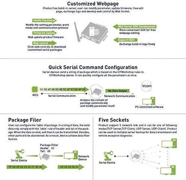 Support 2 channel RS232/RS422/RS485 to Ethernet/Wi-Fi Conversion, Serial Speed Upto 230400 bps