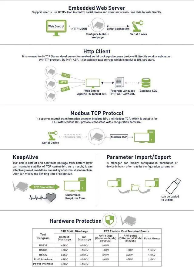 Support TCP/IP/Telnet /Modbus TCP Protocol