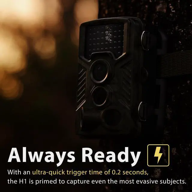 PIR side sensors prime the H1 to capture subjects as quickly as 0.2 seconds after sensing motion within its 120° angle of detection. Even the most evasive subjects can be detected by the side sensors of the H1, preparing the camera for an instant capture.