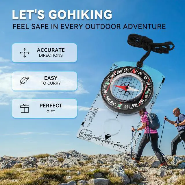 The compasses is perfect for hiking, camping, and outdoor adventures, offering a lightweight and portable navigation solution.