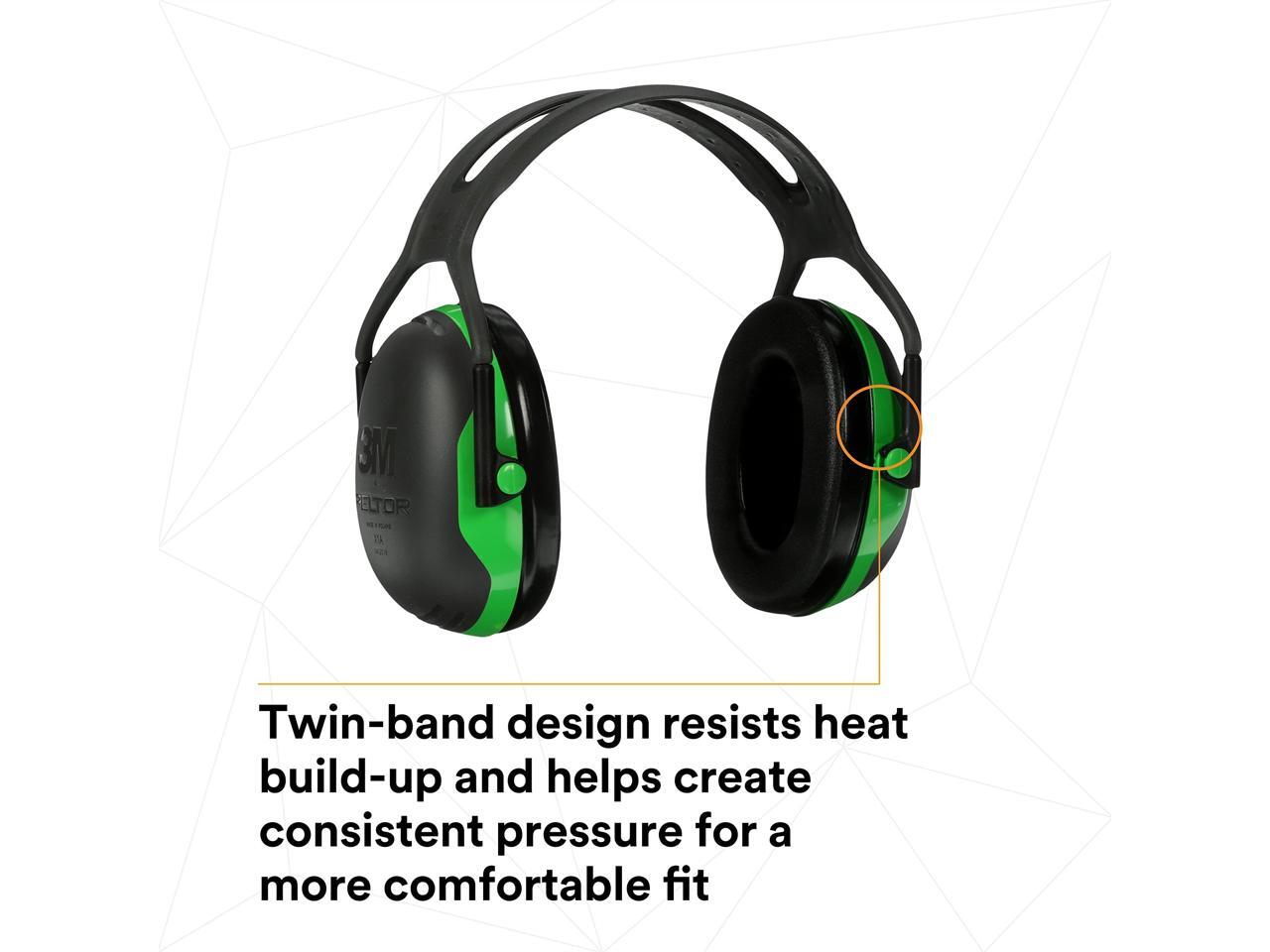 3M - X1A - 22dB Over-the-Head Ear Muffs, Black, Green