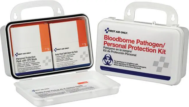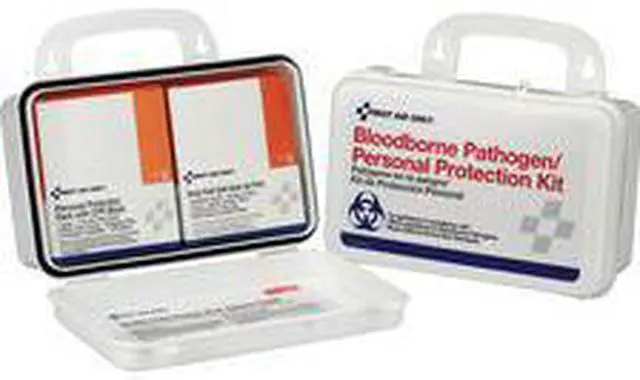 Bloodborne pathogen (BBP) /personal protection kit with easy-to-open boxes features two emergency response kits in one to protect both you and the injured person. Personal protection pack includes a CPR face mask, gloves, isolation gown, eye and face shield, biohazard bag and BZK clean up wipes to safely perform life-saving CPR. Cleanup pack for body fluid spills contains an assortment of disposable tools and personal protective supplies that are suitable for the cleanup of bloodborne pathogens or other potentially infectious substances. Cleanup pack includes paper towels, chloride antiseptic towelettes, disinfectant cloth, scoop, spatula, nitrile exam gloves, absorbent powder, biohazard bag, unmarked bag and twist ties.