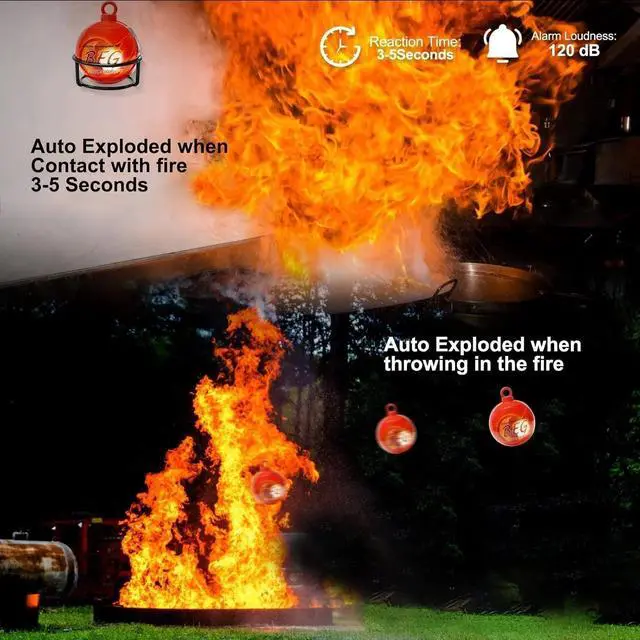 Constructed with safe, non-toxic materials. Simply mount or place it in areas prone to fire riskif flames occur, the ball automatically activates within 35 seconds of contact. It rapidly extinguishes the fire and emits a loud alert to warn nearby occupants.