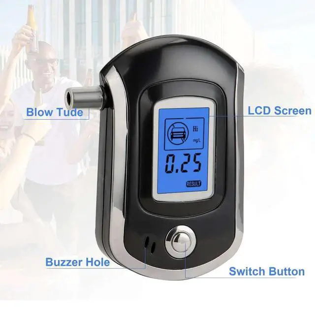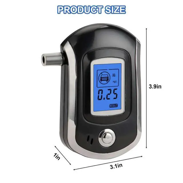 This breath alcohol tester breathalyzer device provides a simple and quick way for you to check the alcohol level in the air that you breathe out after drinking, which helps you to make a decision before driving.