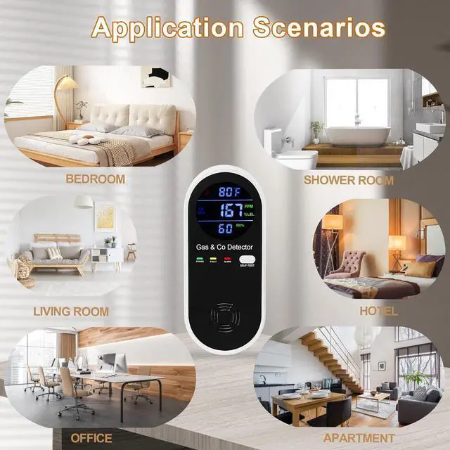 Application The gas and carbon monoxide combined detector is suitable for homes, restaurants, apartments, offices, hotels, oil plants, gas stations, campervans, etc.