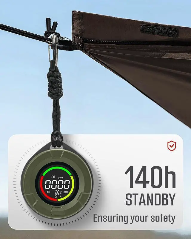 Long-lasting power: With a high-capacity rechargeable system featuring a carbon monoxide detector and Type-C fast charging, it can enjoy continuous operation for up to 140 hours. It is reliable and convenient, providing continuous protection during long trips - perfect for home, office or travel use.