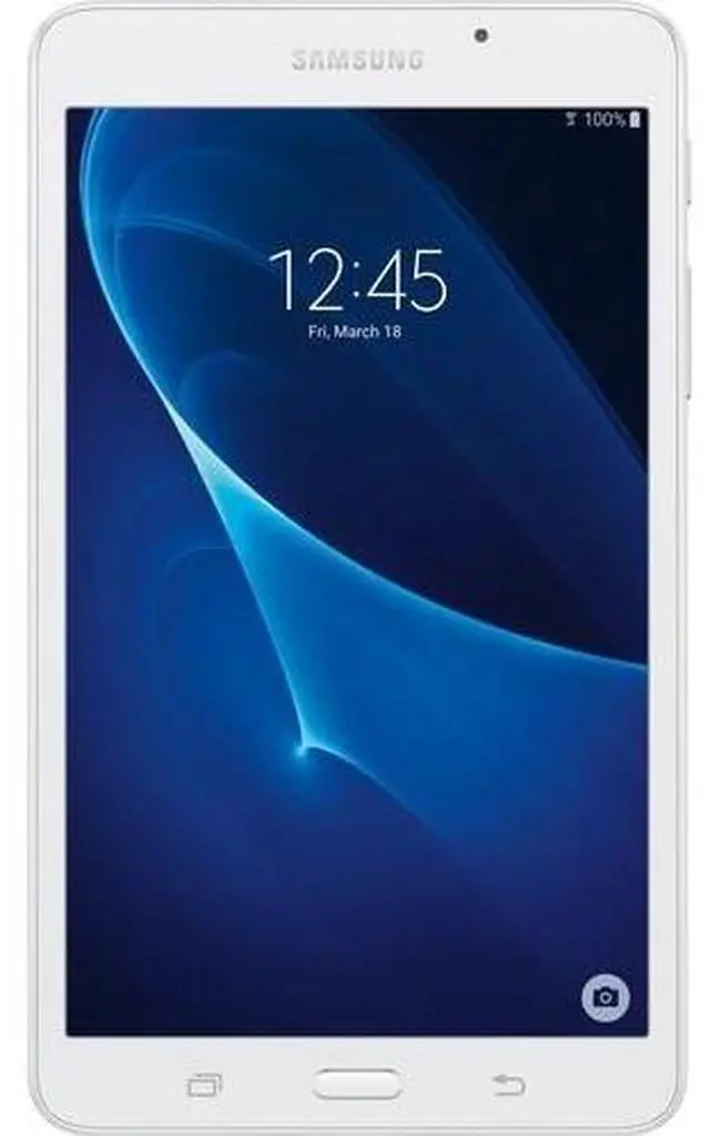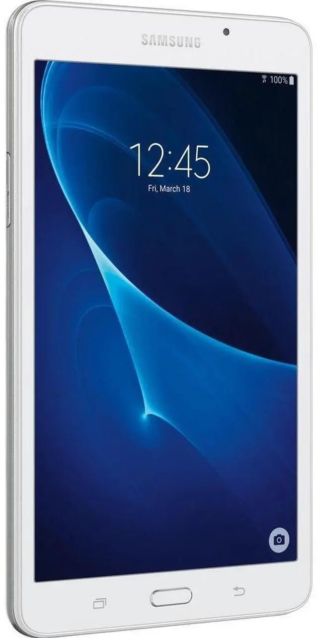 The white 7.0" Tab A 8GB Tablet from Samsung delivers powerful performance and wireless content sharing in a sleek, modern design. This tablet is powered by a quad-core 1.3 GHz Snapdragon 410 processor and has 1.5GB of RAM. It comes equipped with 8GB of built-in storage, a micro-USB port for data sharing, and a microSDXC card slot that supports up to 200GB of additional storage capacity. For high-speed Internet connectivity, Wi-Fi is built-in. Bluetooth 4.0 connectivity is also integrated for wireless pairing with compatible devices, such as headphones and other Bluetooth-enabled accessories.