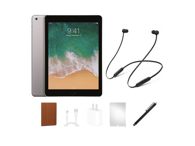 Refurbished Apple iPad 5 (5th Gen, 2017) 128GB, Space Gray, Wi-Fi only, Beats Bundle. BUNDLE INCLUDES: iPad Beats Flex Headphones, Case, Screen Protector, stylus pen, charging accessories.