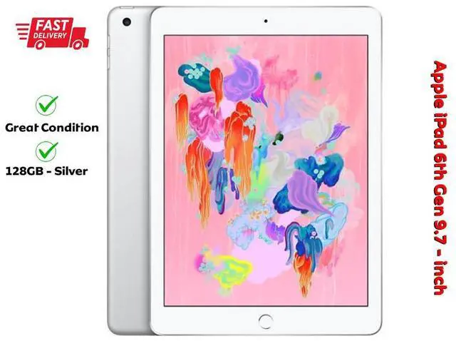 The Apple iPad 6th Generation ( 9.7 -inch, Wi-Fi, 128GB) in Silver offers a sleek design and powerful performance. Equipped with a 9.7 -inch Retina display, an A10 Fusion chip, and 128GB of storage, its perfect for work, entertainment, and creativity. It supports the 1st generation Apple Pencil, making it ideal for note-taking and drawing, all in a lightweight, stylish package. This iPad is a great choice for users seeking a reliable and stylish device for everyday use.