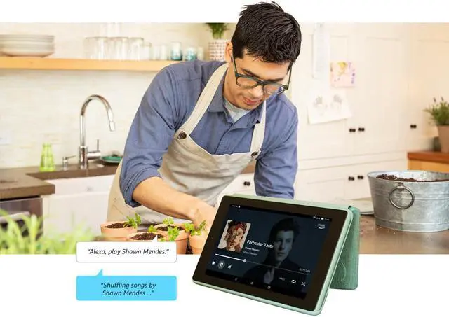 Fire 7 is our best-selling tablet-now 2X the storage, faster quad-core processor, hands-free with Alexa, and 2X as durable as the latest iPad mini. Complete tasks, enjoy movies on the go, browse recipes, or ask Alexa for the weather-making your every day easier.