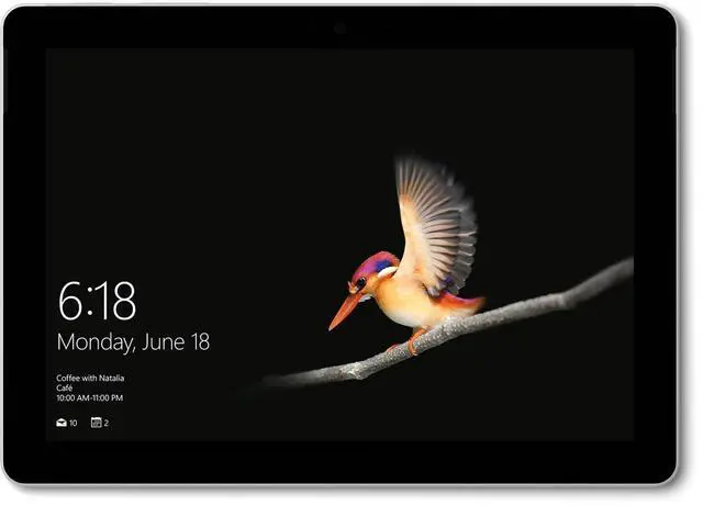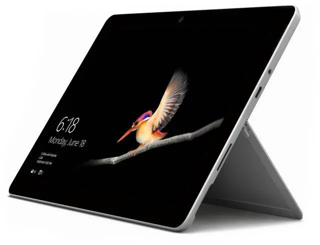 The Microsoft Surface Go 10-inch tablet is designed for ultimate portability and productivity. It features a 10-inch touch screen with a resolution of 1800 x 1200 pixels and integrated Intel HD Graphics 615. With 8GB of RAM and a 128GB storage capacity which can be expanded, it runs on Windows 10 Home and is powered by an Intel Pentium Gold 4415Y processor. This tablet comes in a stylish platinum color and offers a front and rear camera, built-in speakers, 1080p video recording, and a battery life of up to 9 hours.