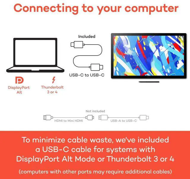 Its advanced thermal design keeps things cool and quiet, letting you stay focused for hours. Uncompromising quality to stability. Easy connection & tidy cables for a clean creative workspaceWacom Cintiq supports USB-C, HDMI, and USB-A connectivity. The Wacom Cintiq can be connected to a computer via a single USB-C cable. All ports are neatly integrated on the back of the device, so whether the display is used flat or is tilted at an angle, you can keep the cables neat and tidy. Wacom Adjustable stand Supports any angle that you likeThe Wacom Cintiq 24 touch include the Wacom Adjustable Stand, which allows you to adjust the screen angle smoothly and easily to suit your posture and preferred working position.