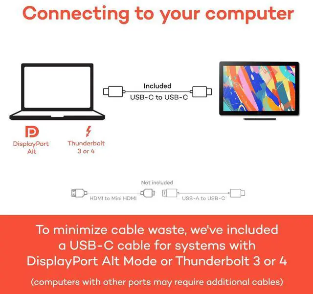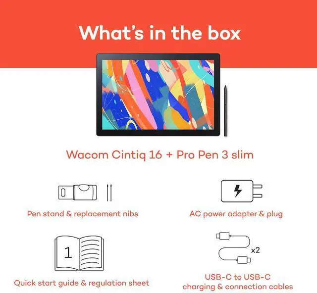 Easy connection & tidy cables for a clean creative workspaceWacom Cintiq supports USB-C, HDMI, and USB-A connectivity. The Wacom Cintiq 16 can be connected to a computer via a single USB-C cable. All ports are neatly integrated on the back of the device, so whether the display is used flat or is tilted at an angle, you can keep the cables neat and tidy. Wacom Adjustable stand Supports any angle that you likeThe Wacom Adjustable Stand, which allows you to adjust the screen angle smoothly and easily to suit your posture and preferred working position.