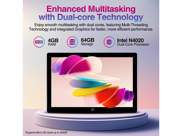 - Power Through Your Day: Equipped with 4GB DDR4 RAM, 64GB storage, and an N4020 Quad-Core CPU, the FWIN232 tablet pc handles your daily tasks with ease.