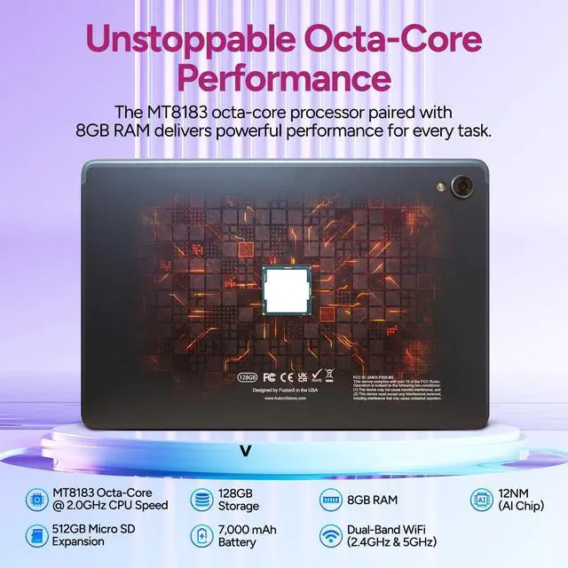 Powered by the MT8183 Octa-core CPU running @2.0GHz, backed by 8GB of RAM and boasting 128GB of internal storage, the Fusion5 F202_8G is a performance juggernaut. This tablet effortlessly handles multitasking, delivering swift and efficient processing. The generous RAM ensures seamless transitions between applications, while the expansive storage not only accommodates your digital life but also contributes to the device's overall responsiveness. Whether you're working on productivity tasks or immersing yourself in multimedia, the F202_8G's performance is a testament to its cutting-edge specifications, providing a smooth and responsive user experience.
