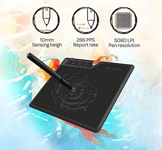 ?266 PPS REPORT RATE + 5080LPI RESOLUTION + 10MM PEN READING HEIGHT + 6.5*4 INCHES ACTIVE AREA?-- This size is more portable and lightweight, easy to be carried around in the laptop bag to the wo