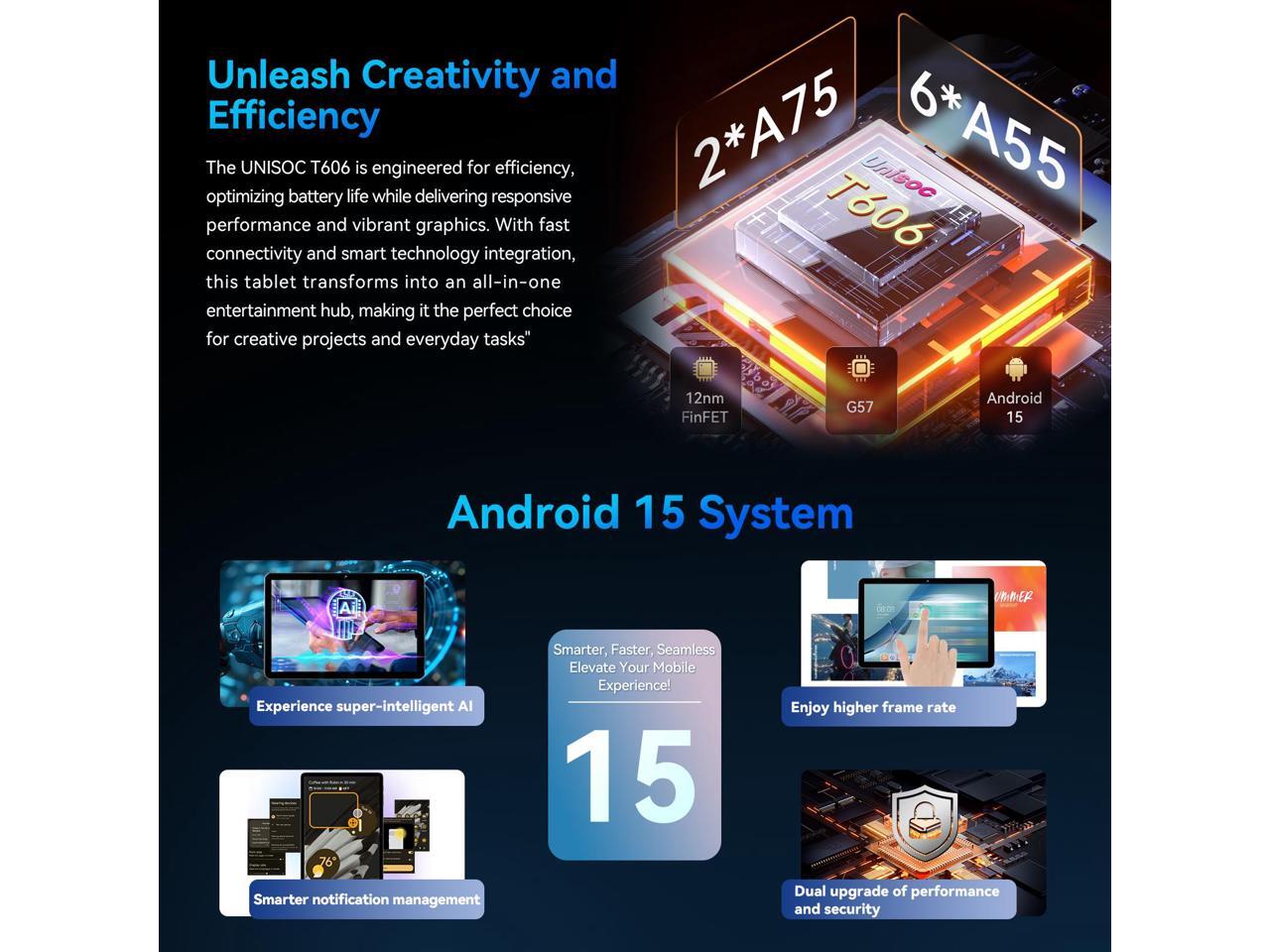 - Powerful Processor: Equipped with the Unisoc T606 chip, featuring an 8-core CPU and advanced 12nm process technology and the Mali-G57 GPU.