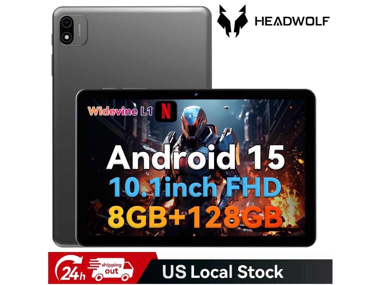 Headwolf Android 15 Tablet 10 Inch Tablets, WPad6 Octa Core FHD 1920 * 1200 Incell Display Android Tablet, 8GB RAM + 128GB ROM, Widevine L1 Support, Wireless Projection, Dual Cameras, 6000mAh
