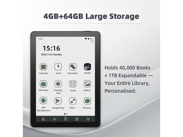 - Ample Storage & Performance: With 4GB RAM and 64GB storage, this device ensures smooth operation and ample room for thousands of books and documents, enhancing performance and ease of access across various media.